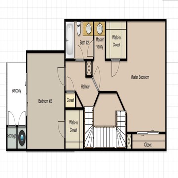 The Twelve, 2 bedroom, 2 bath Townhouse Home with attached Garage. Note the two walk-in closets.